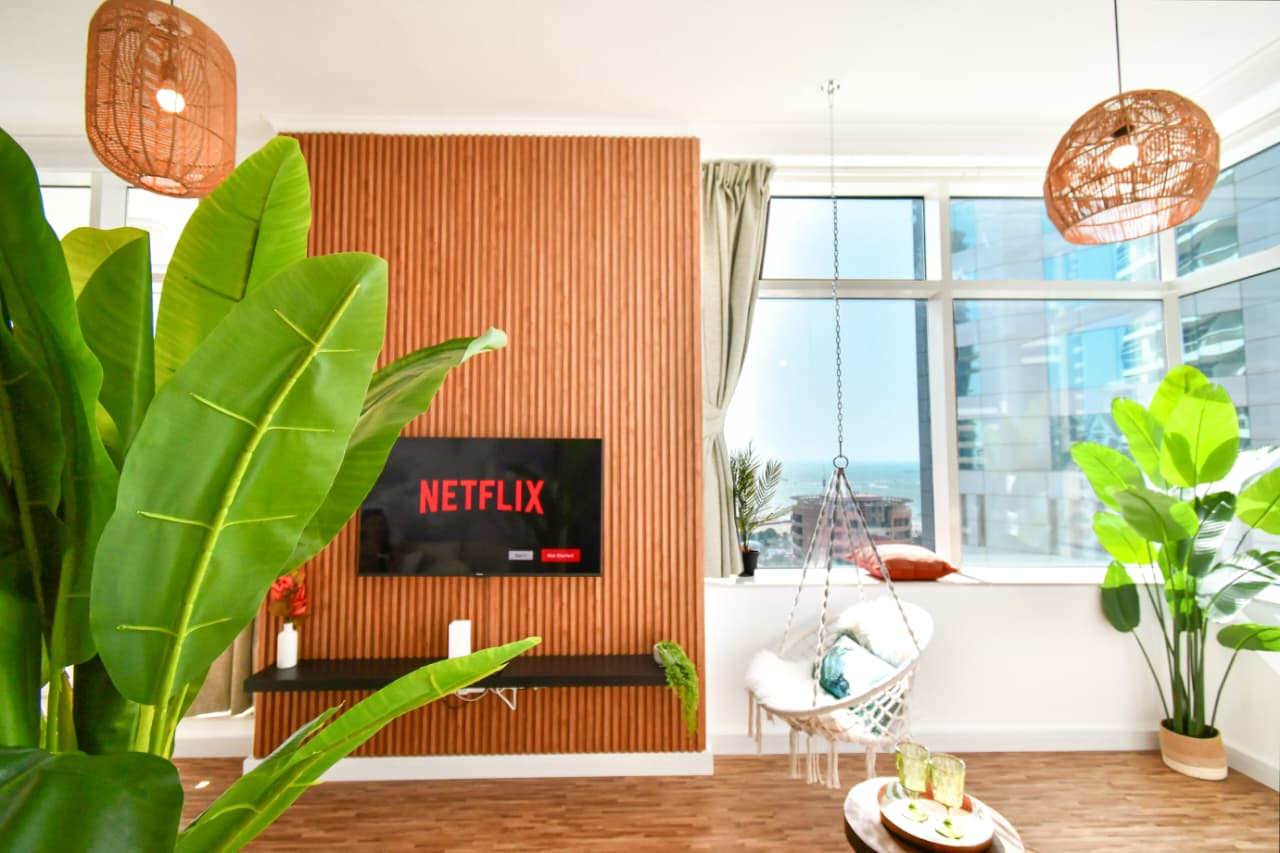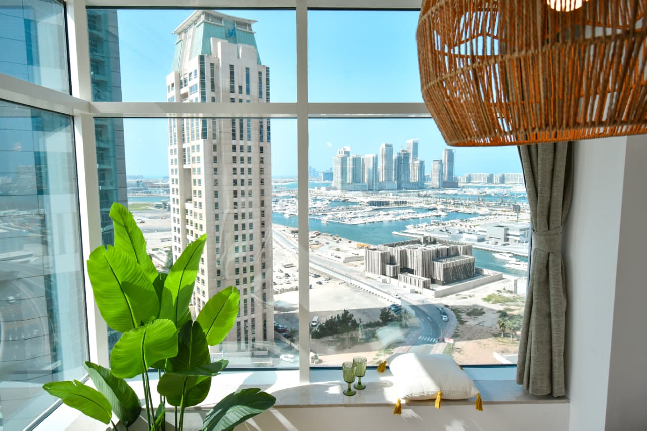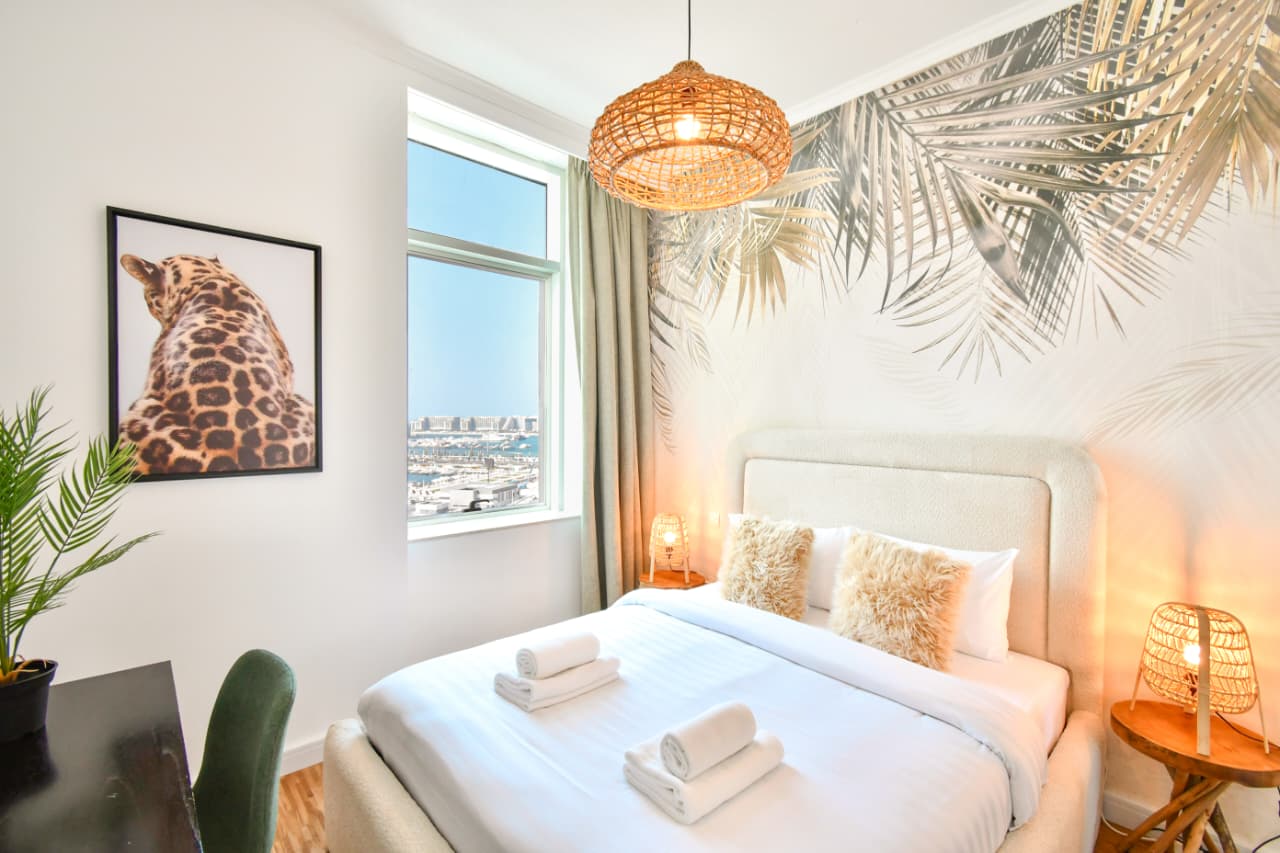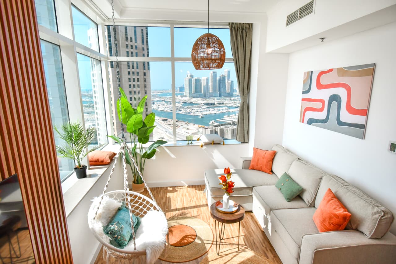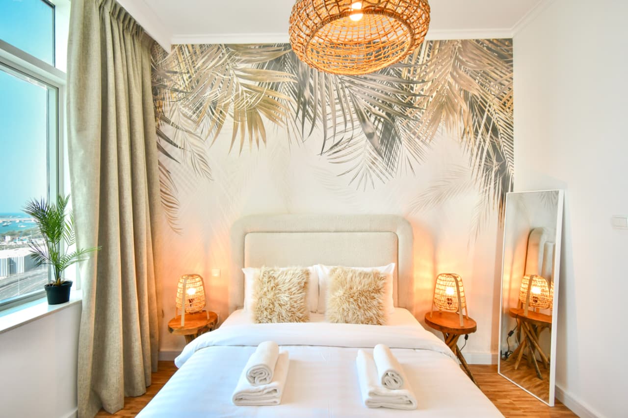 A bright one bedroom apartment presented by HEP Stays and prepared to deliver a smooth, comfortable and practical guest experience. The apartment offers approximately 719 point 68 square feet on a high floor with a clear sea view and natural light throughout the space. The unit is furnished in a simple contemporary style suitable for both short and extended stays.